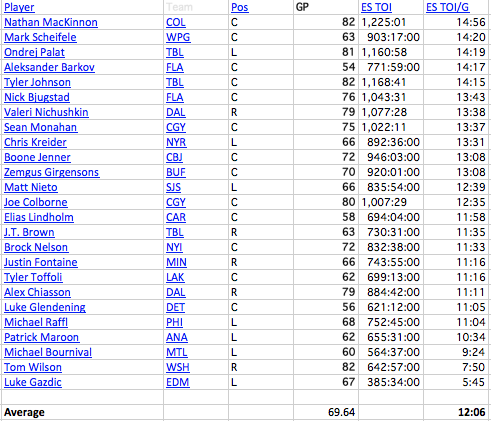 The other reason that made sense to me why one wouldn’t want bottom 3 forwards treated the same way as others is because they don’t get much ice time. According to this great piece by Garret Hohl (which I will reference more later), fourth liners average 8:03 of even-strength ice time per game. If a team has a bright young player, it’s understandable why they would want them playing top minutes in the AHL, say, rather than under 10 minutes in the bigs. Development, etc. etc. The limited ice time for fourth liners, obviously, makes sense on the surface because it frees up top liners (the big guns) to play more ice time, and thus, maximize their value.